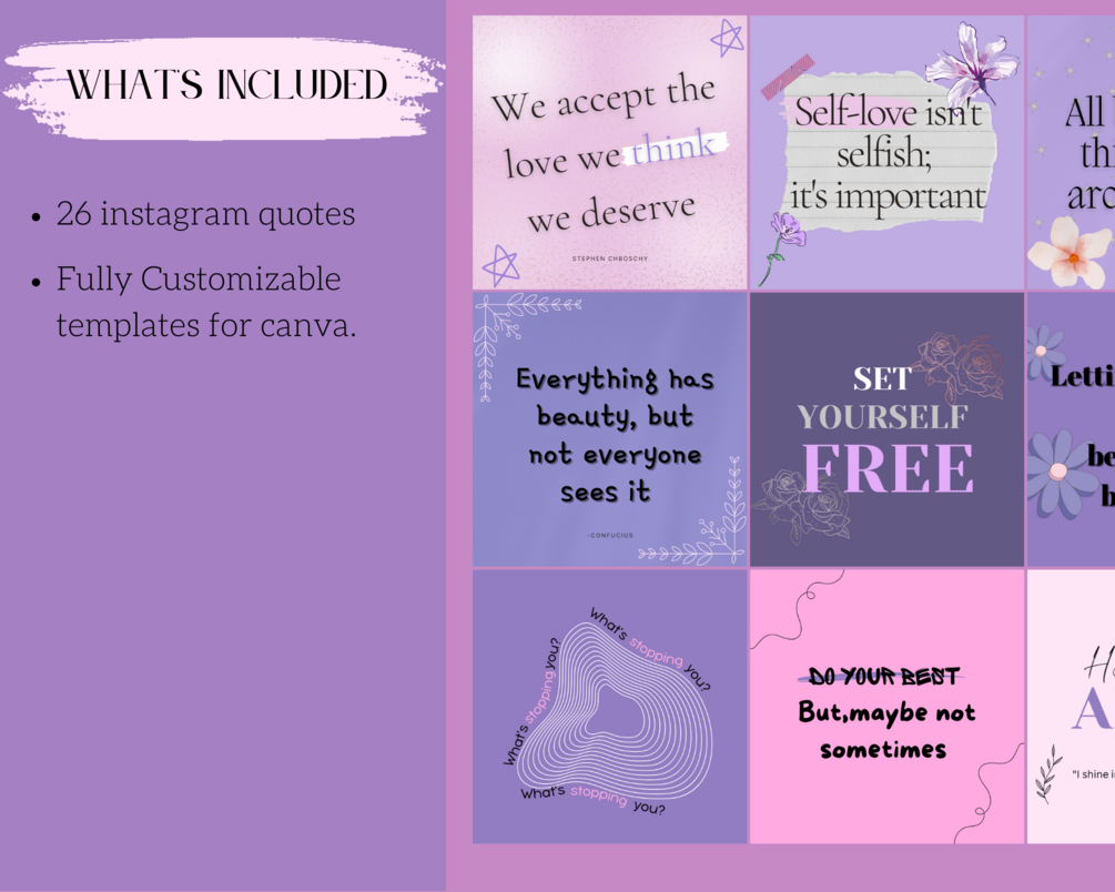 26 Purple Instagram Quotes, self-love Quotes, Canva Editable Quotes, Aesthetic Instagram Post, Instagram Feed, Instagram Template