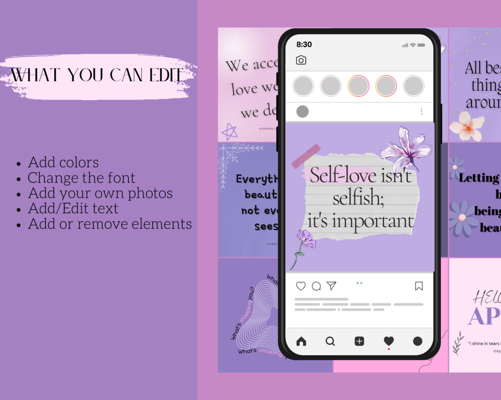 26 Purple Instagram Quotes, self-love Quotes, Canva Editable Quotes, Aesthetic Instagram Post, Instagram Feed, Instagram Template
