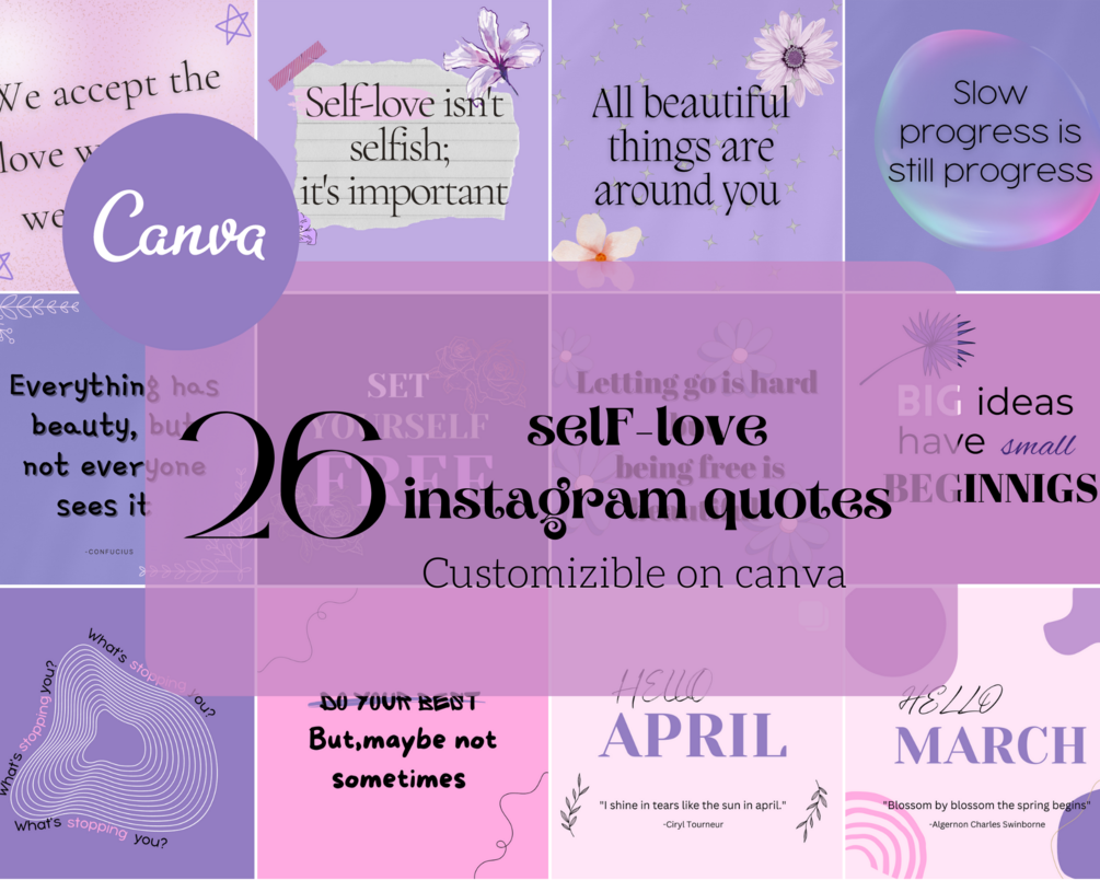 ❀26 aesthetic self-love and motivational quotes perfect for your instagram feed fully custumizable on canva.